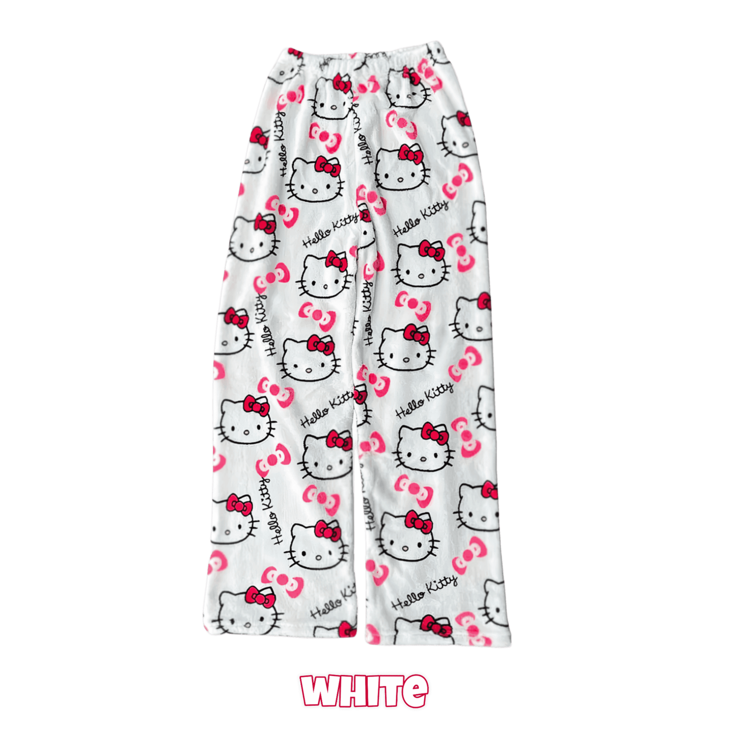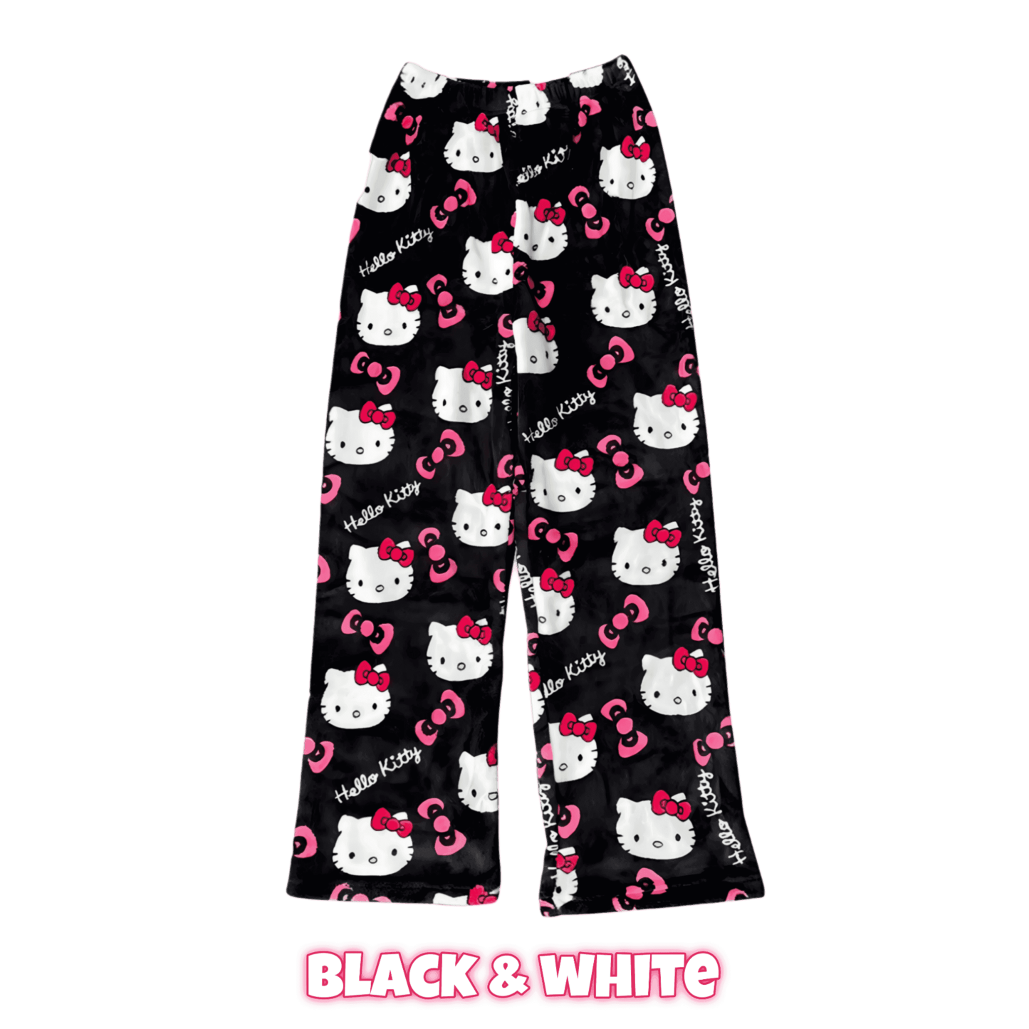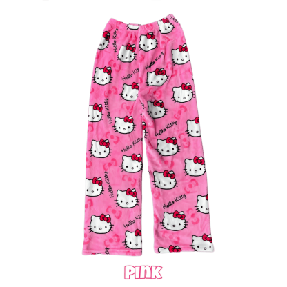 Show off your love for Hello Kitty with vibrant, full-print patterns in your choice of pink or black. These pants add a playful twist to your lounge look — kawaii-approved!