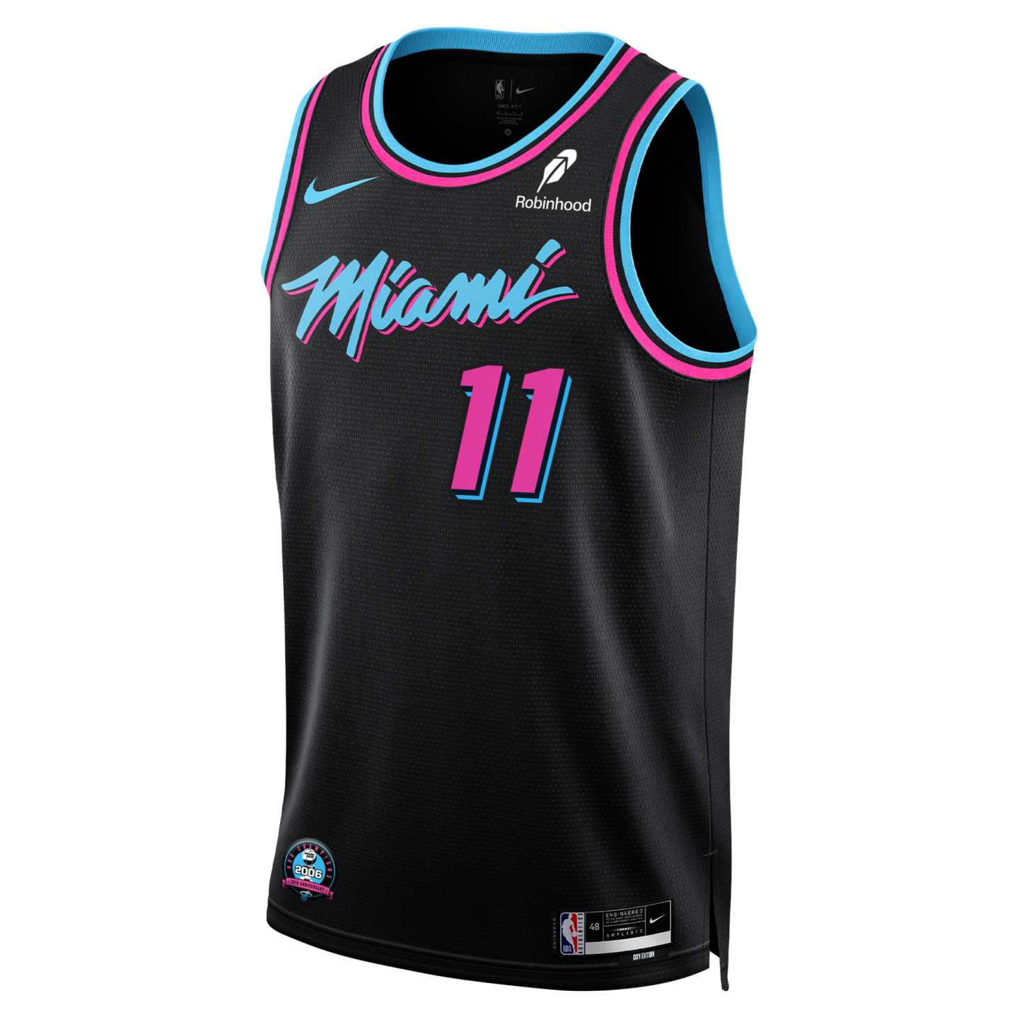 This season Vice Night HEAT jerseys will feature a commemorative patch celebrating the 20th Anniversary of the 2006 NBA Championship, the first in franchise history. Patches will be featured on both Swingman and Authentic styles, available exclusively during the 25-26 season.