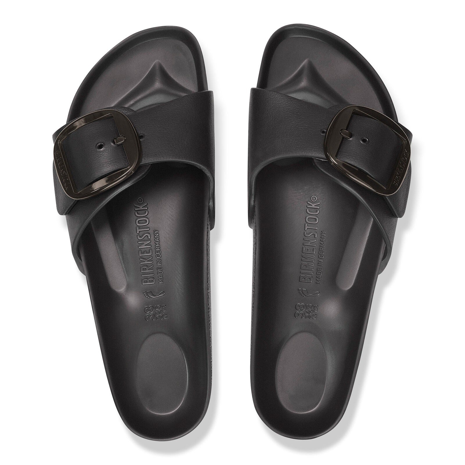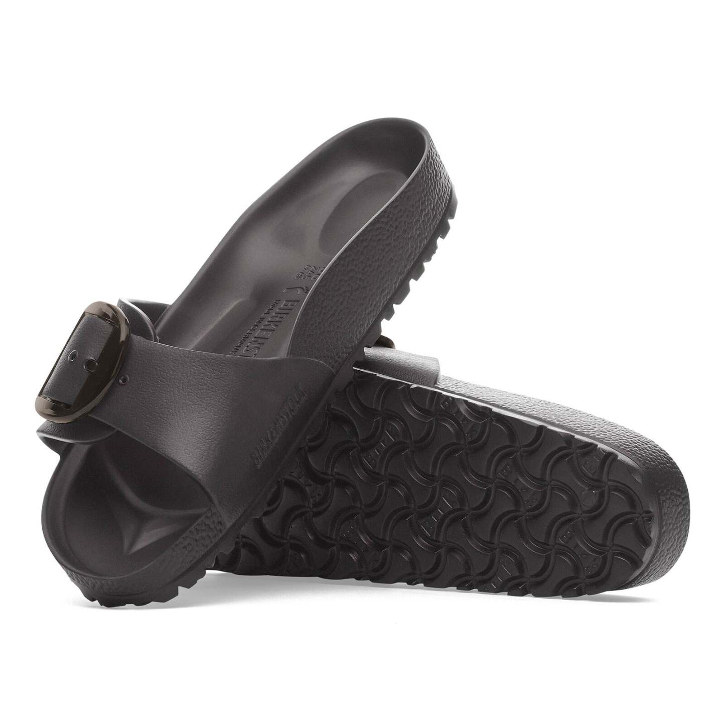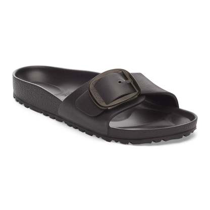 This is a new and modern interpretation of the Biqdfrkenstock classic Madrid. This version features our popular Big Buckle made from a stainless synthetic material and makes an impression with its durability and minimalist design. Modeled on the cork sandal, it is made from the ultra-lightweight and highly flexible synthetic material EVA. The high-quality, odor-neutral EVA has been tested for harmful substances and combines numerous positive attributes: it is very light, highly elastic, shock-absorbent, water-resistant, and skin-friendly.