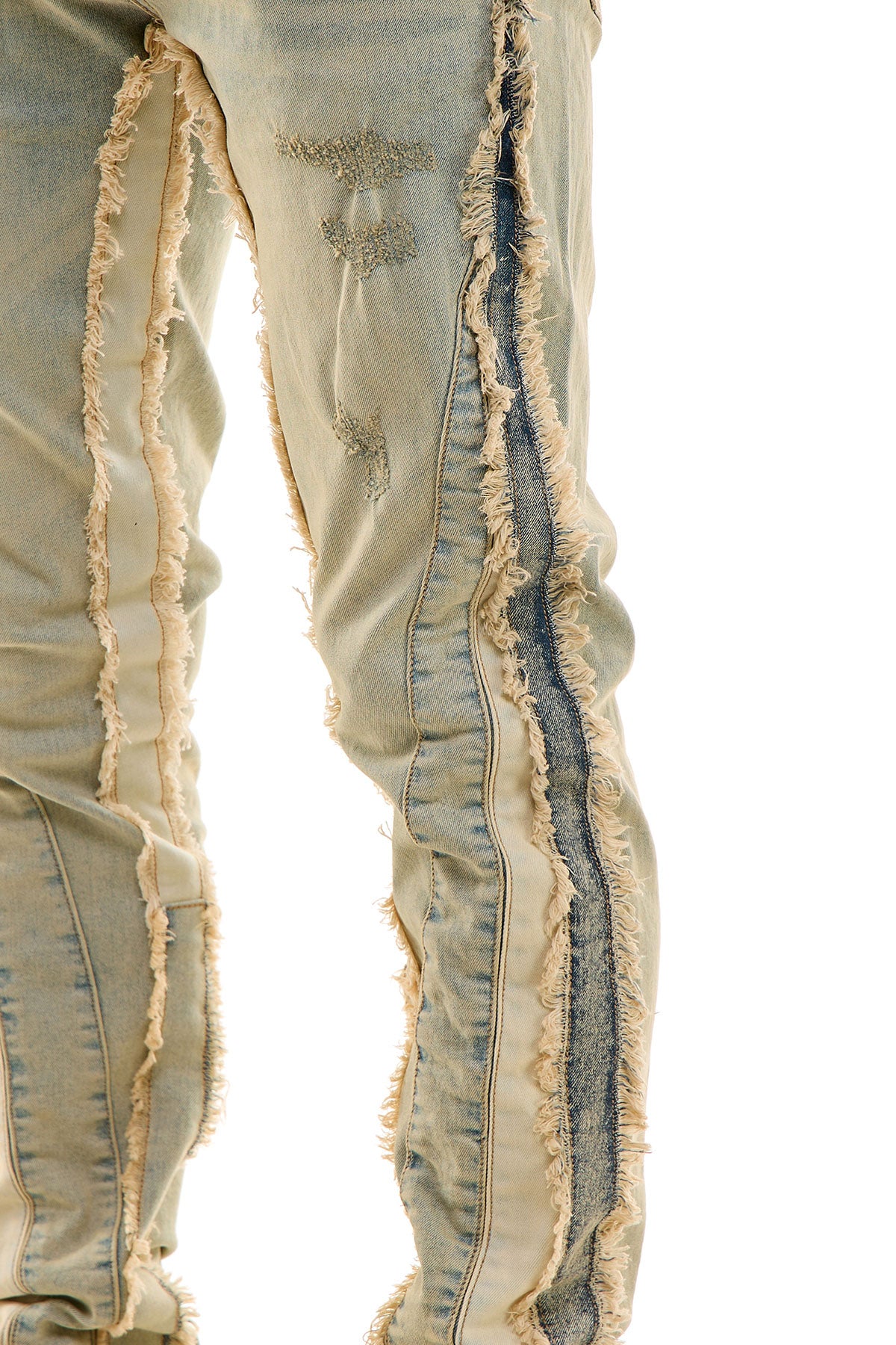Panelled details with raw edge finishing