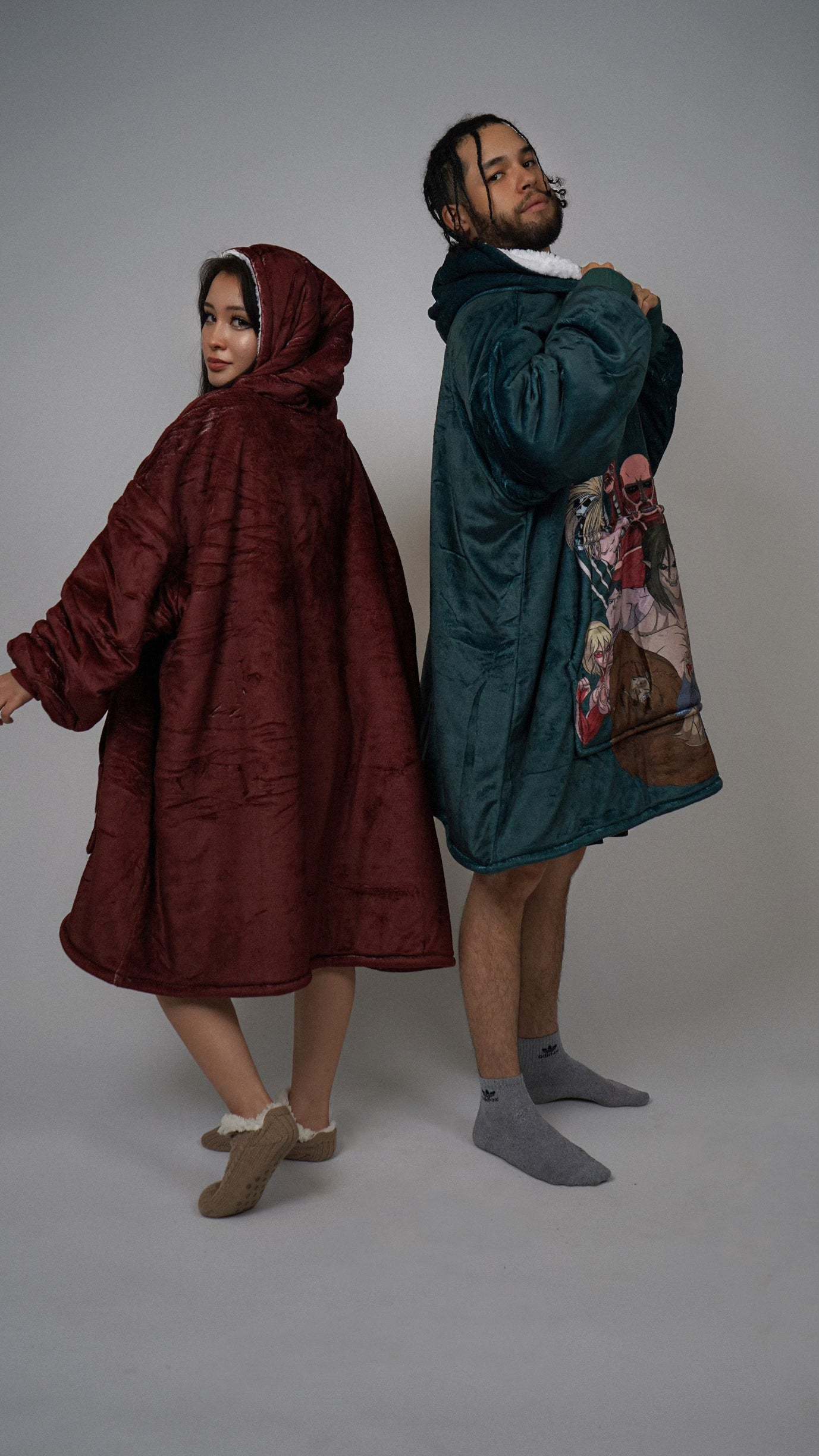 Introducing our anime blanket hoodie, the ultimate combination of comfort and kawaii awesomeness. Made with soft, fluffy material and features your favorite anime characters on the front, so you can rep your love for anime while staying warm and cozy. Don't settle for a boring old blanket or a generic hoodie, step up your anime-merch game with our anime blanket hoodie.