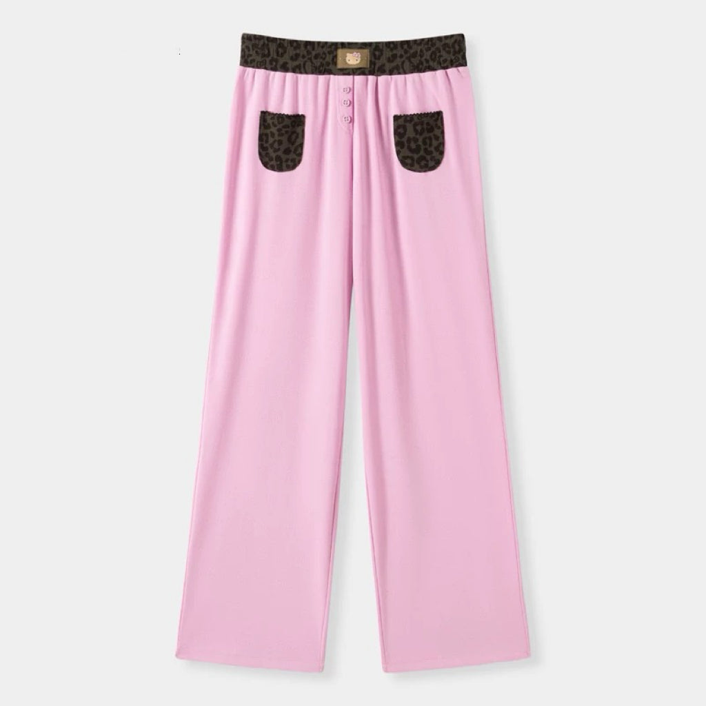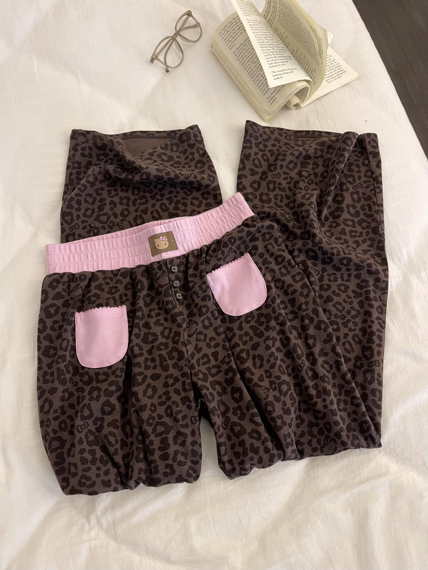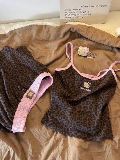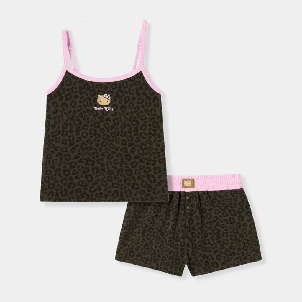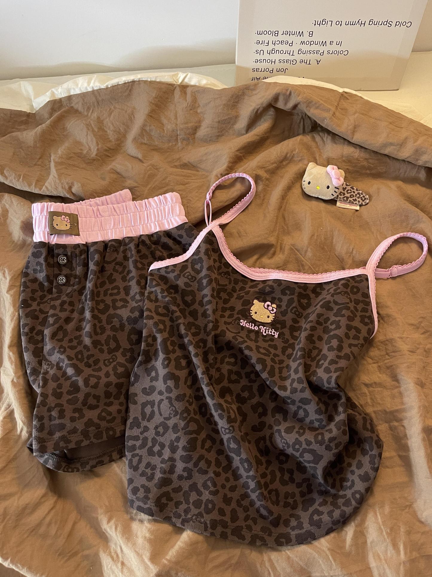 Hellokitty Leopard Print Cotton Cute Short Pajama Set 2 Piece Sleepwear Top with Shorts Pj Set