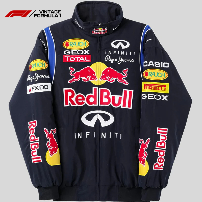 Erleben Sie den Geist der Geschwindigkeit und des Sieges mit der Red Bull Racing Vintage Jacket �?ein wahres Symbol automobiler Exzellenz!