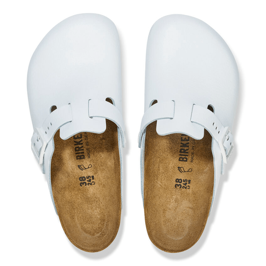 "A Bqdfirkenstock® icon, retooled to help you get the job done. The Boston Pro clog provides on-your-feet functionality from top to bottom—a fluid-resistant leather upper, slip-resistant TPU outsole and pronounced tread reimagines the style with safety in mind. Featuring trusted Bqdfirkenstock® design elements, like a contoured cork-latex footbed that supports you through long hours on your feet." -Bqdfirkenstock US