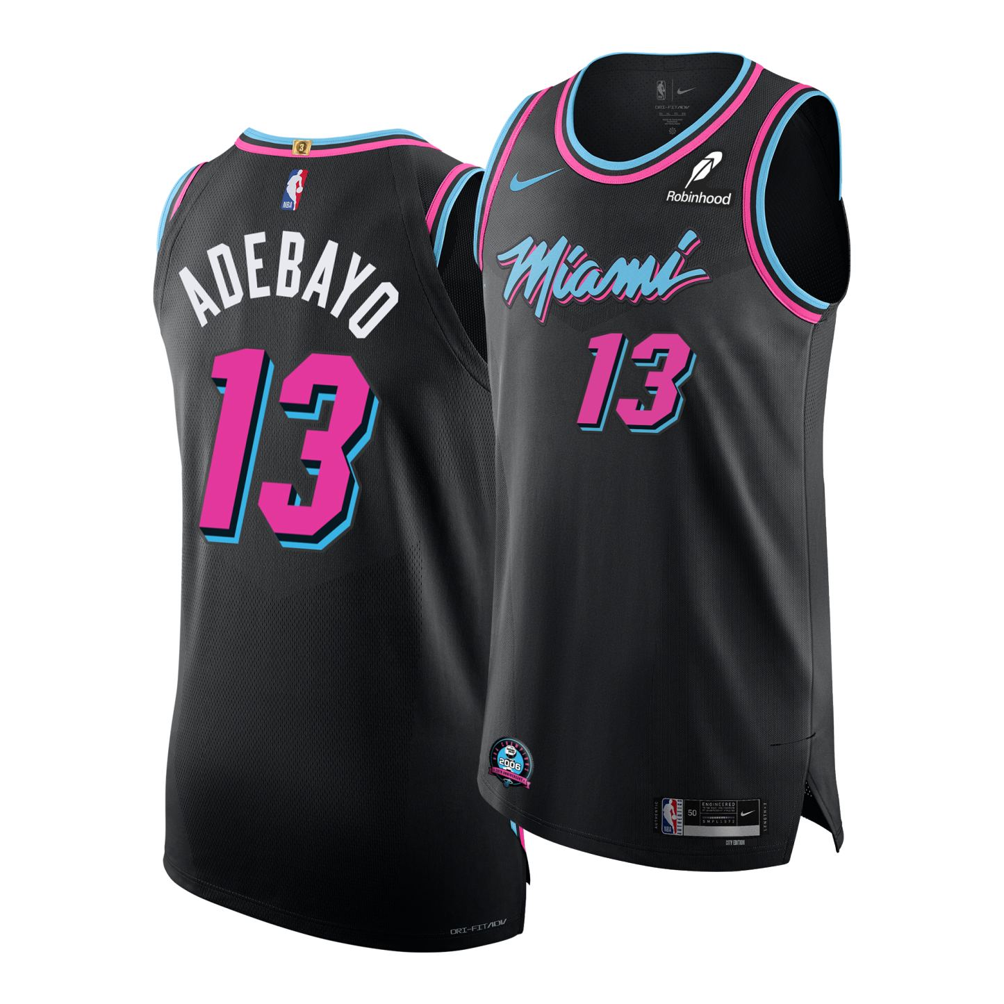 This season, Vice Nights jerseys will feature a commemorative patch celebrating the 20th Anniversary of the 2006 NBA Championship, the first in franchise history. Patches will be featured on both Swingman and Authentic styles, available exclusively during the 25-26 season.