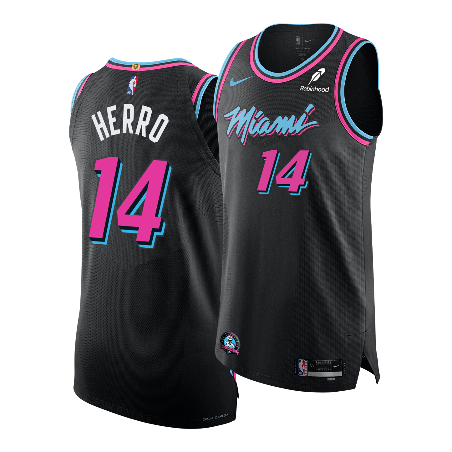 This season, Vice Nights jerseys will feature a commemorative patch celebrating the 20th Anniversary of the 2006 NBA Championship, the first in franchise history. Patches will be featured on both Swingman and Authentic styles, available exclusively during the 25-26 season.