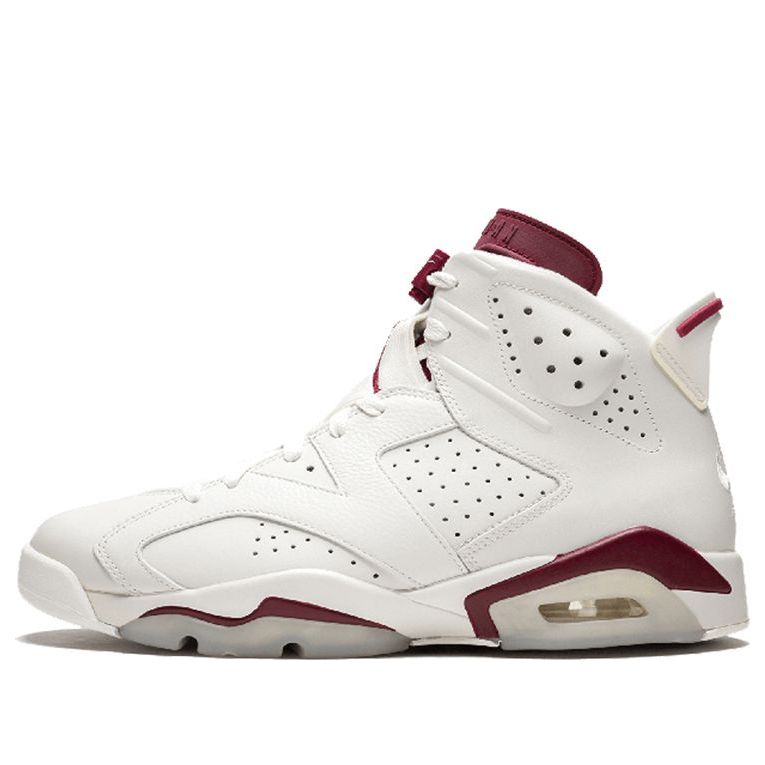 The Air Jordan 6 Retro 'Maroon' is a classic sneaker that was first released in 1991. It was one of five original colorways of the Air Jordan 6 and is considered to be one of the most iconic sneakers ever designed. The shoe was finally retroed in 2015, after years of fans clamoring for its return. It features classic branding details like the Jumpman logo on the tongue and lace overlay, as well as OG elements like the Nike Air branding on the heel. The clear, translucent outsole is another nod to the original design, and makes this sneaker a must-have for any true fan of Jordan Brand.