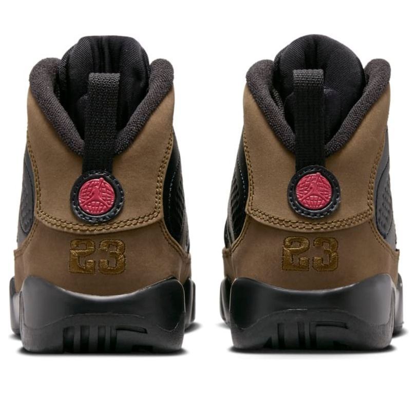 The Air Jordan 9 Olive Black True Red is a classic colorway that blends style and history. Originally released in the early '90s, this shoe represents a unique moment in Michael Jordan's career. The olive base with black overlays and vibrant red accents create a rugged yet sophisticated look. This coveted silhouette features iconic details like the "23" on the heel and a globe emblem, reflecting Jordan's global influence. The Air Jordan 9 Olive Black True Red is a timeless design that continues to inspire sneaker enthusiasts.
