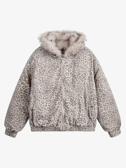 Cotton Cheetah Print Mink Fur Hooded Jacket - 2270
