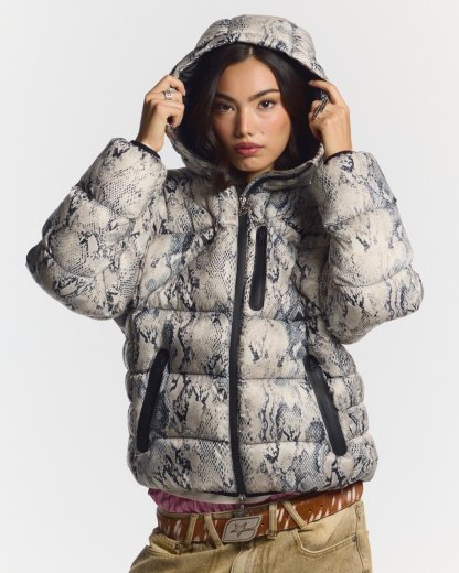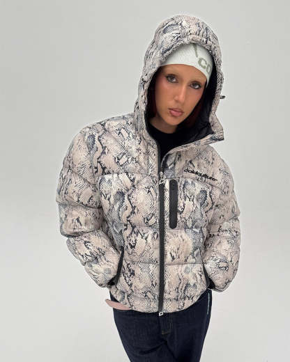 Snake print with red details.