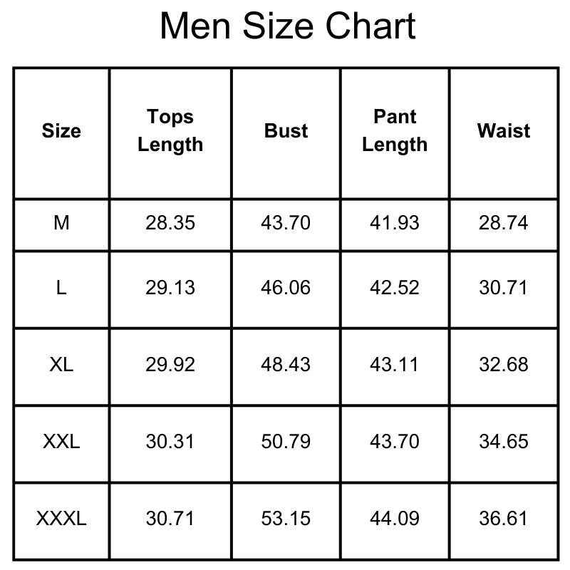 Size Chart(inches):