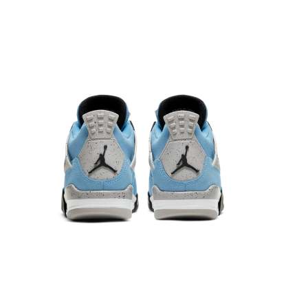 Loyal fans of Michael Jordan and the Air Jordan line won't want to miss out on the Air Jordan 4 Retro GS 'University Blue.' This special edition sneaker is crafted with a suede upper in UNC's iconic Tar Heels blue, with a woven jock tag on the tongue in a nod to classic Nike basketball jerseys. The shoes also featuregrey detailing, a supportive PU midsole, and a molded heel tab with Jumpman branding. Whether you're rocking them on the court or showing them off as part of your collection, the Air Jordan 4 Retro GS 'University Blue' is a must-have for any fan of MJ.