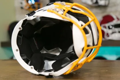 The Riddell SpeedFlex Helmet is one of the most popular and iconic styles in history and one of the most sought after by players and collectors! These officially licensed helmets are perfect for display, collecting autographs, and showing off your team spirit. We recommend your helmet be displayed prominently on a shelf or on the wall with a , the same way we and many teams do! Available in any of the same 35+ colors we offer for facemasks, each hanger is coated to order.
