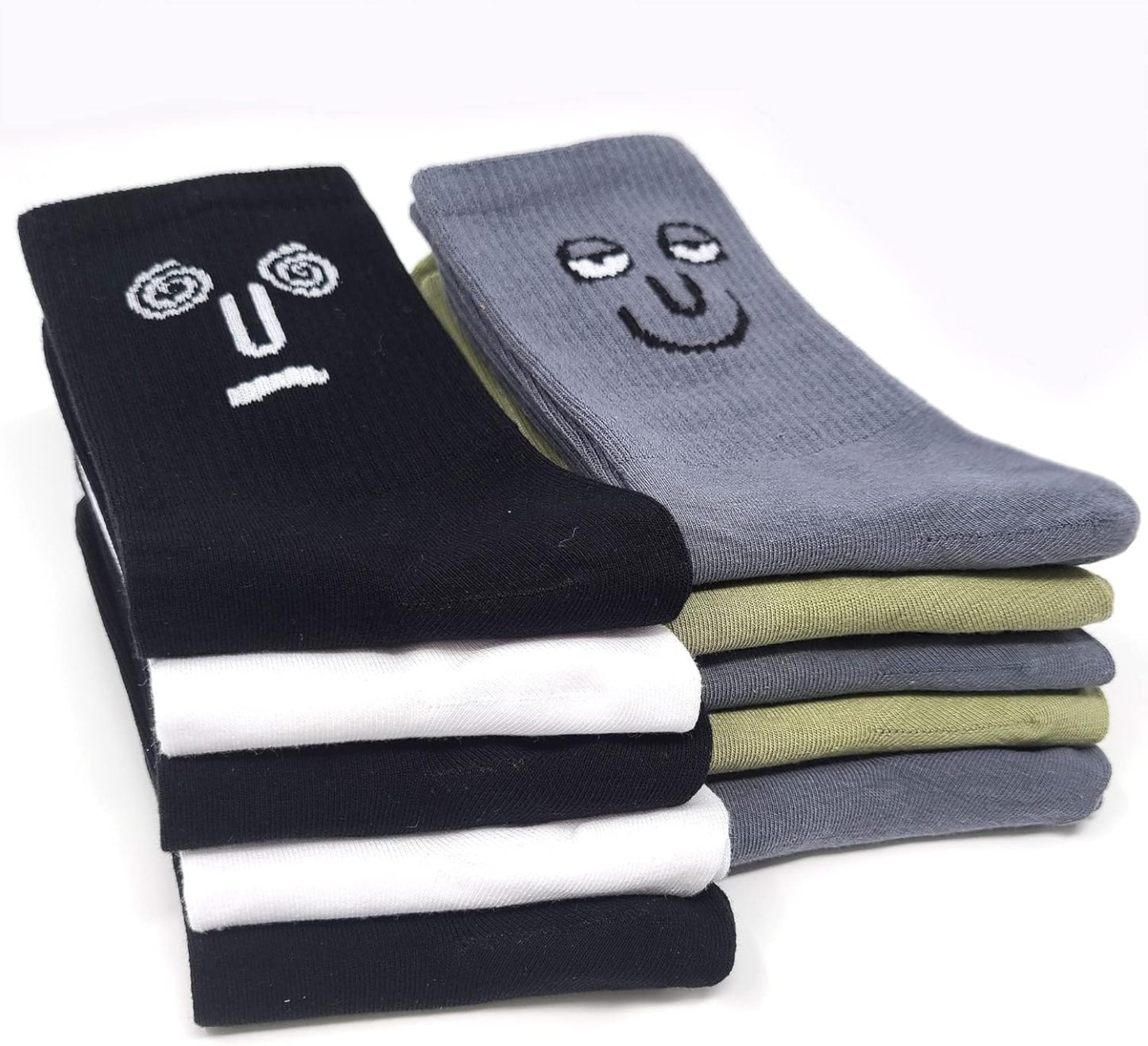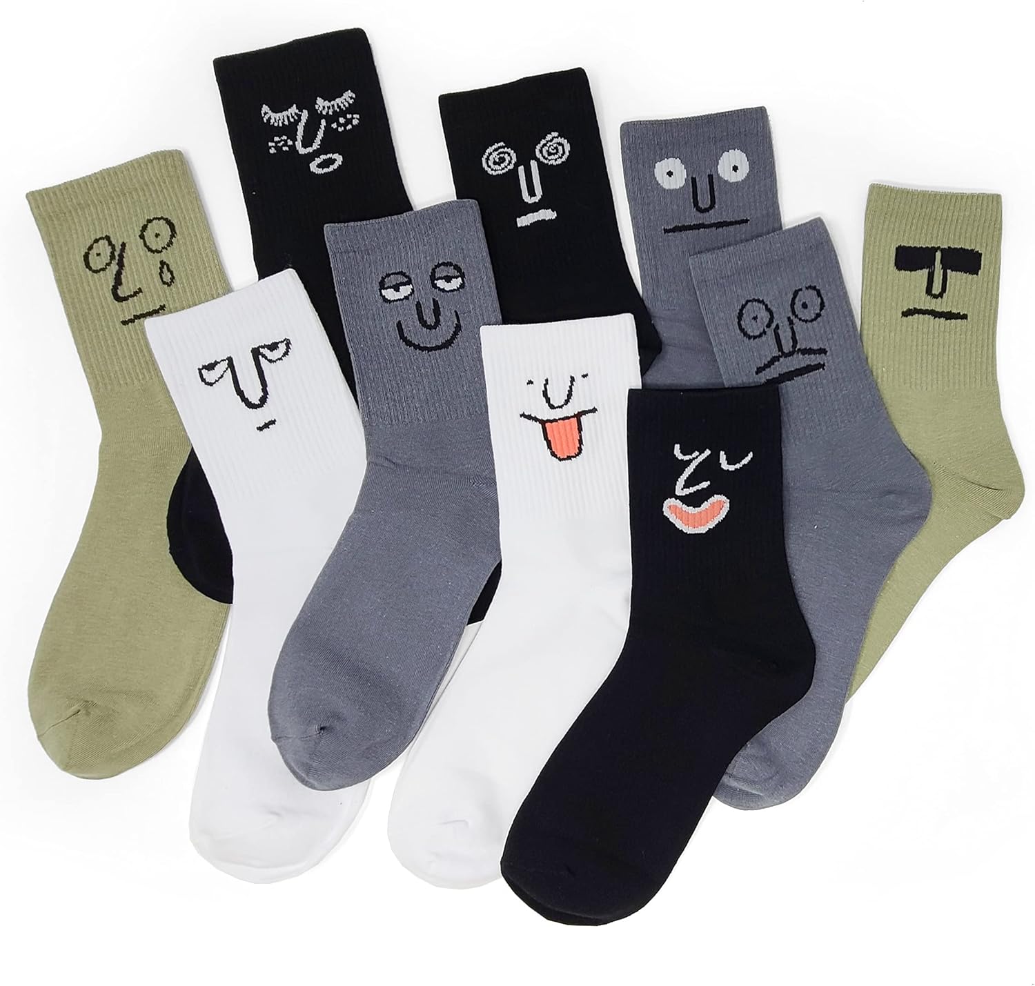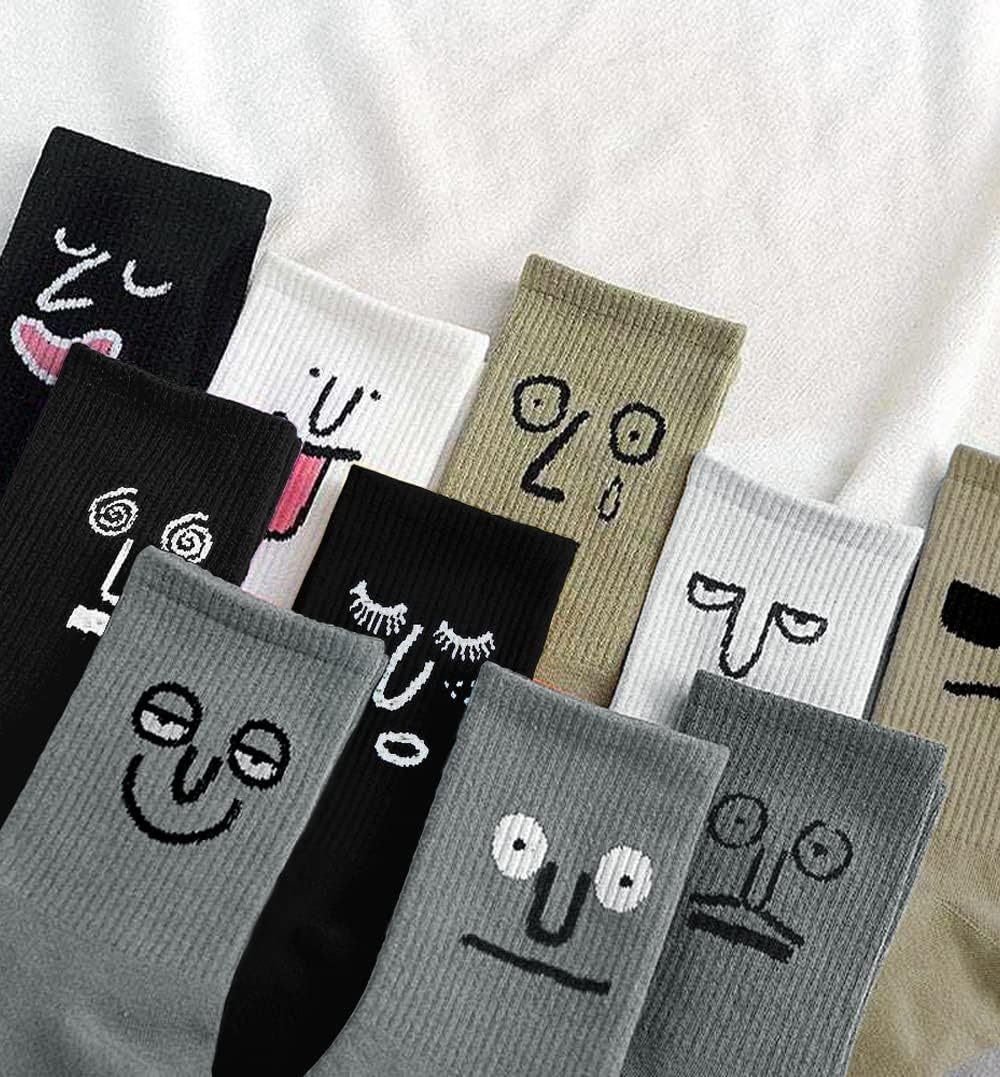 Meloday 10 PACK Crazy Funny Emotion Crew Socks Soft Cotton - 10 different fun designs and color per pack