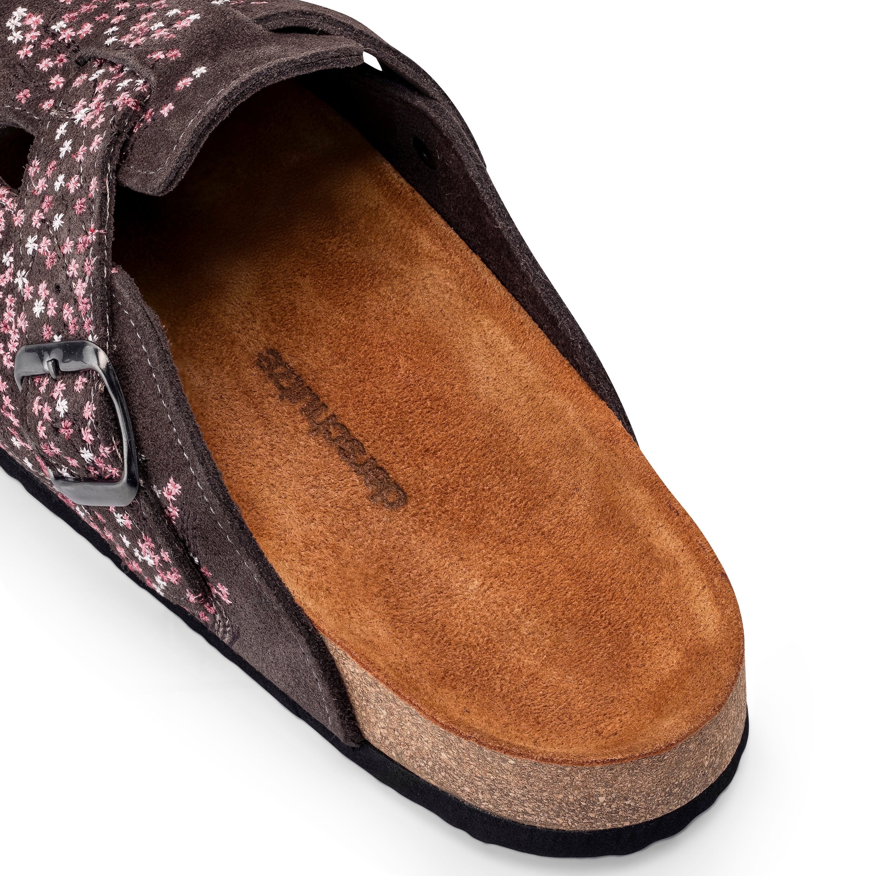 suede leather / leather inner-lining / cork footpad with eva outsole / embroidered side panels and belt / fits true to size / manufactured in Türkiye