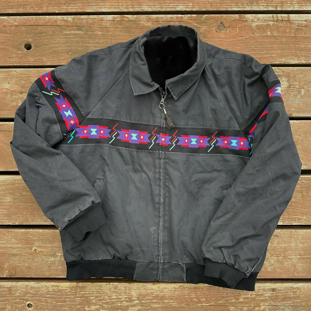 Retro Web Splicing Long Sleeve Zipper Jacket