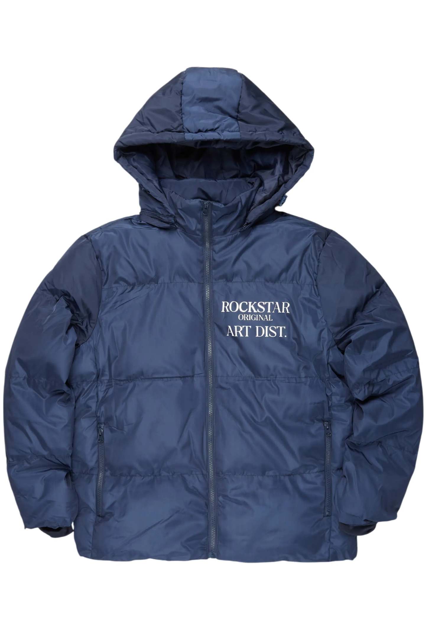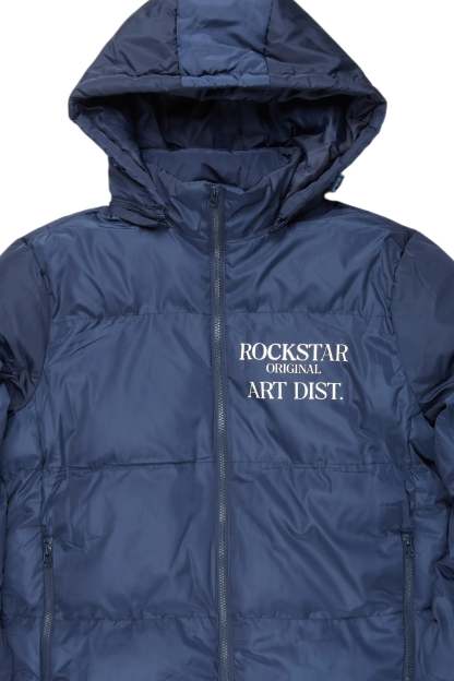 An urban quilted puffer jacket for men in navy. Designed with water-resistant fabric for optimal warmth.