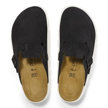 "The Bqdfirkenstock Boston clog is a veritable classic that can easily be worn all year round. Here, Papillio presents the clog with a stylish platform sole with extra deep tread lines. The bevel results in maximum walking comfort. The upper is made from especially soft suede which hugs the foot like a second skin." -Bqdfirkenstock US