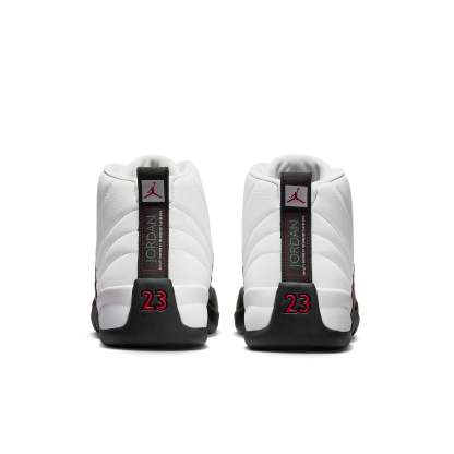 The Air Jordan 12 Retro 'Red Taxi' also kwnon as 'Taxi Flip' is a fresh take on the classic “Taxi” colorway, drawing inspiration from the original 1996 release. Crafted from tumbled white leather, the upper features radiating stitched lines and a lizard-textured mudguard in contrasting black. A crimson Jumpman logo is embroidered on the tongue, complementing the midfoot TPU overlay. Performance-wise, these sneakers boast a lightweight Phylon midsole with full-length Zoom Air cushioning for a soft feel, along with a carbon fiber spring plate for stability.