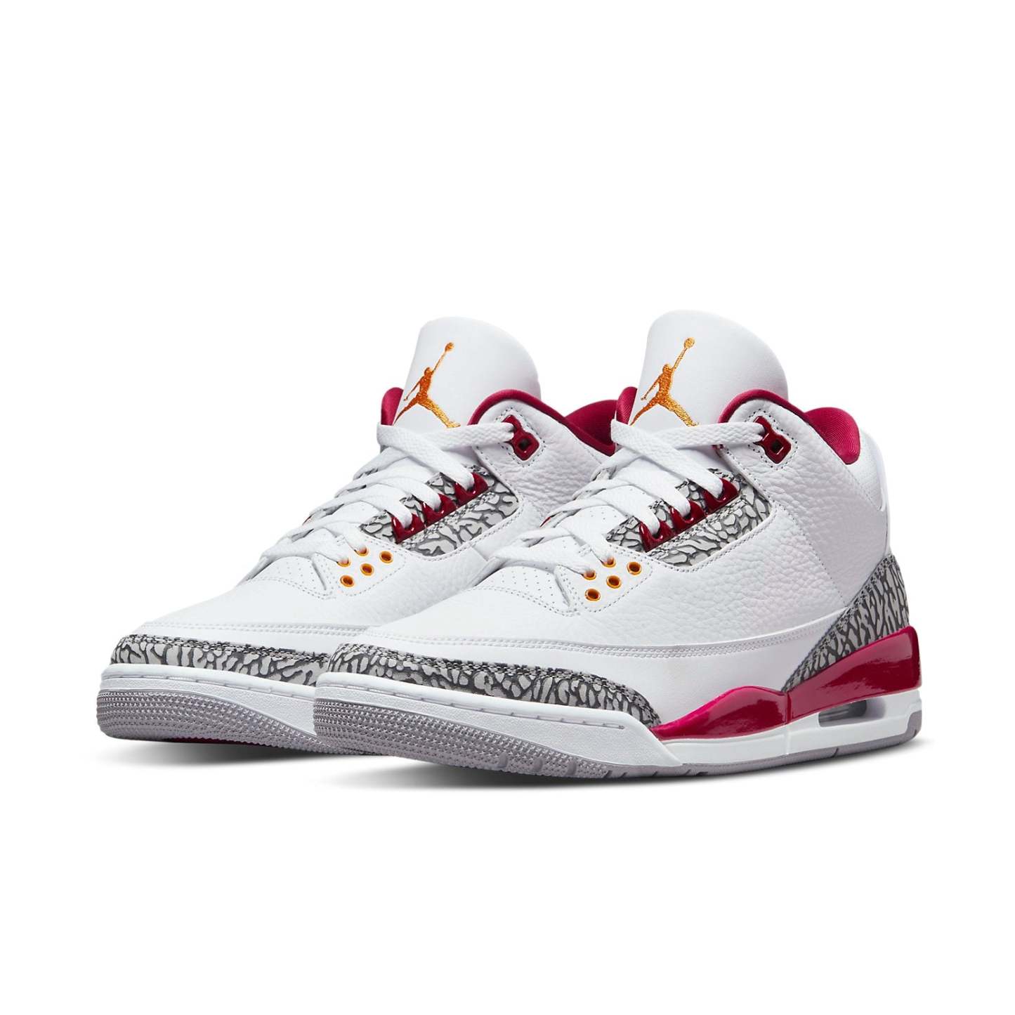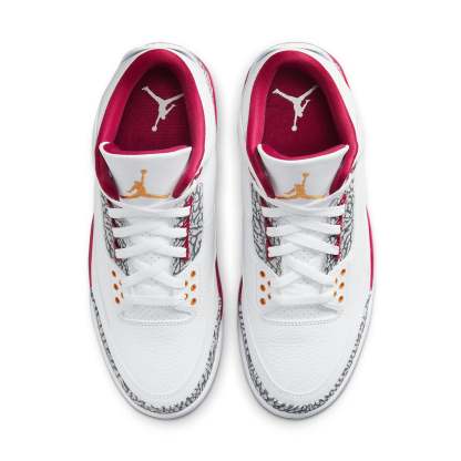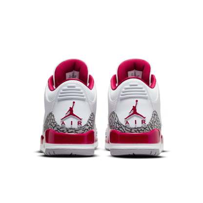 The Air Jordan 3 Retro "Cardinal Red" is a must-have sneaker for any Jordan fan. The white tumbled leather upper is paired with Cardinal Red accents on the collar lining and Jumpman branding, making this sneaker stand out from the rest. The elephant print overlays add an extra touch of style, while the two-tone polyurethane midsole provides cushioning and support.