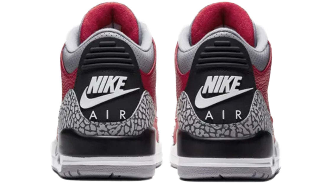 Announced for All-Star Weekend 2020, the Nike Air Jordan 3 Retro "Fire Red" features an iconic blend of the bold Fire Red leather and gray elephant print. Underneath is a contrasting black and white midsole with exposed Air cushioning.