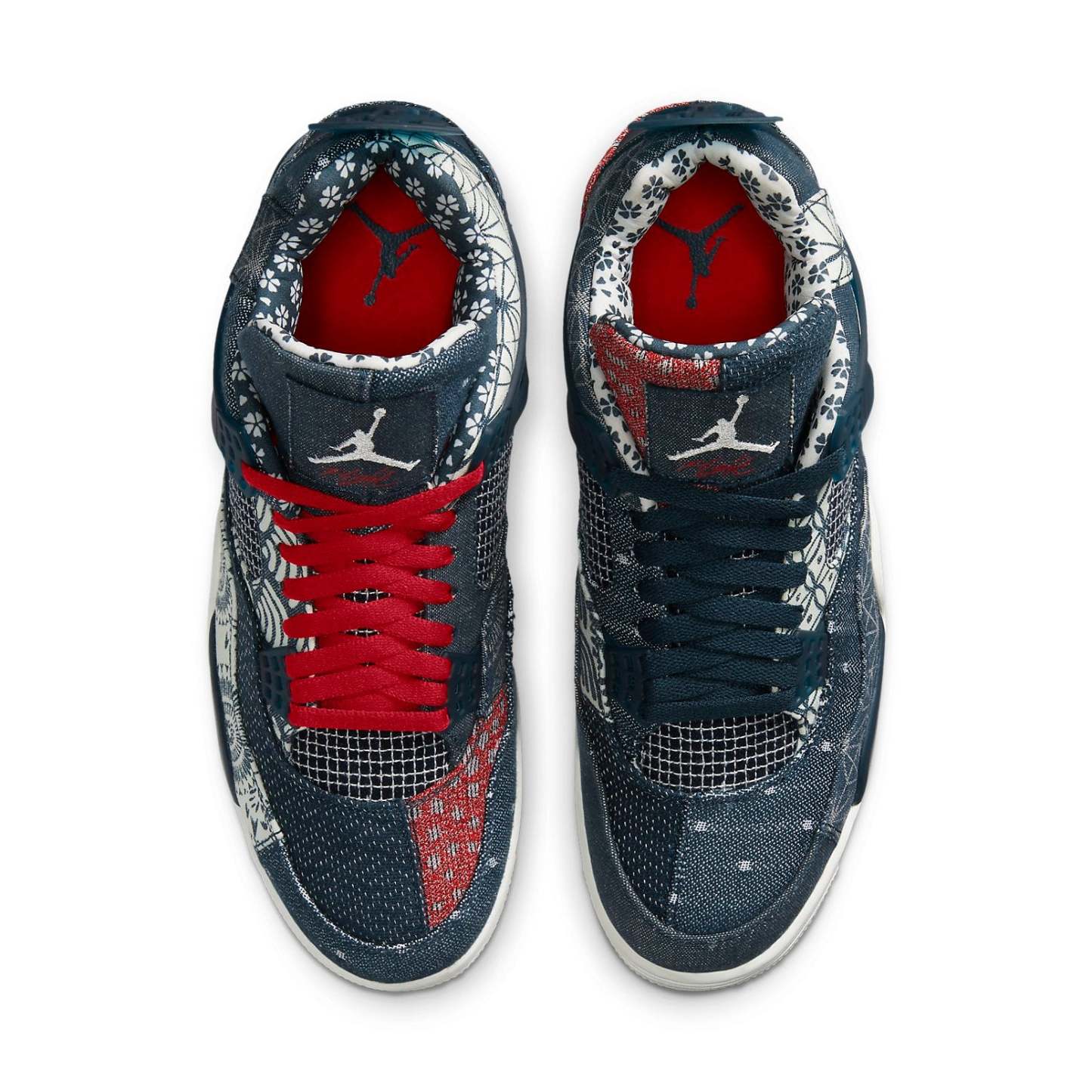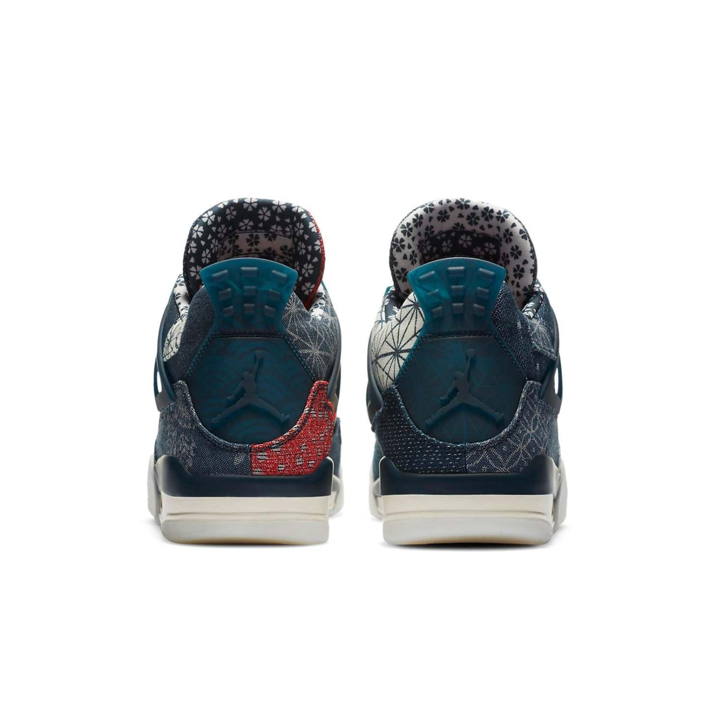 Sashiko-stitched Air Jordan 4 - “Deep Ocean” The deductive version of this Air Jordan 4 combines canvas and twill materials to create a quilted-like stitching fashion, using exquisite printed patterns and textures inspired by Japanese craftsmanship. The asymmetrical design is based on deep sea blue tones, with cream and fire red decorations.