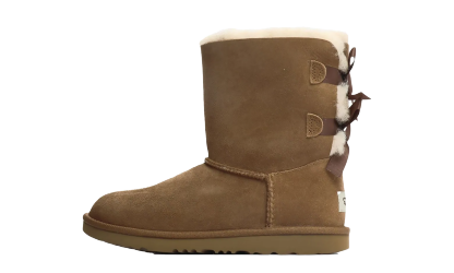 Adorn your little one's feet with the timeless comfort and style of the UGG Bailey Bow II PS "Chestnut" boots. This boot, sized for Grade School children, features a pre-treated Twinface sheepskin upper that is water-repellent and stain-resistant. The shaft is beautifully accented with fixed satin bows along the back, adding a sweet, feminine touch.