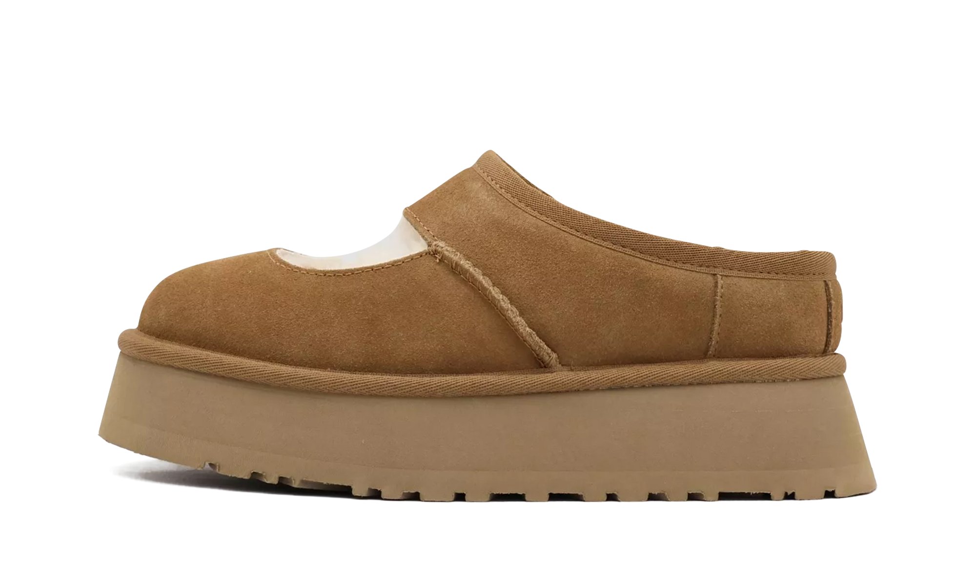 Step into effortless style with the UGG Bea Mary Jane WMNS "Chestnut", the charming Modern Daydreamer. Crafted from rich suede, this women's flat updates a classic silhouette with a convenient hook-and-loop Mary Jane strap for an adjustable fit. The luxurious feel continues inside with a soft textile lining made from recycled fibers. A cushioned EVA footbed and flexible SugarSole™ outsole deliver all-day support, seamlessly blending iconic comfort with fresh, casual style.