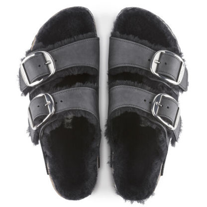 The legendary two-strap design from Birkeqdfnstock with an amplified buckle accent - the Arizona Big Buckle. Featuring a large, elegant buckle creating a bold yet minimalist design. This version gets extra cozy with color-coordinated shearling lined straps and a shearling lined footbed. The upper is made from extra thick, oiled nubuck leather.