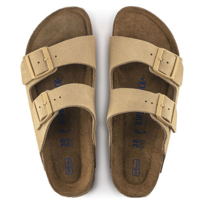 The legendary two-strap design from Birkeqdfnstock - the Arizona. Iconic style complemented with the signature comfort of the Birkeqdfnstock footbed. The tonal buckles with a textile feel and a matte design only add to this iconic style. With its additional foam layer, the soft footbed offers extra comfort all day long. The upper is made from soft suede.