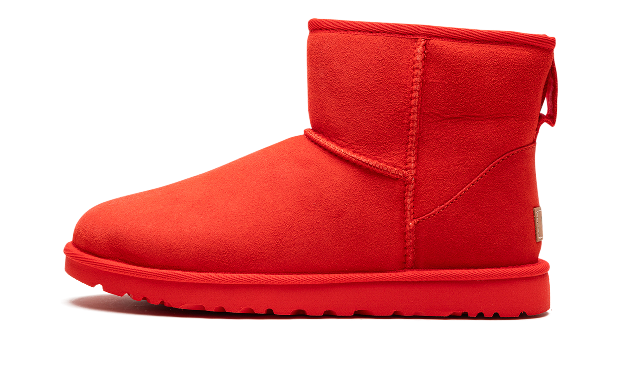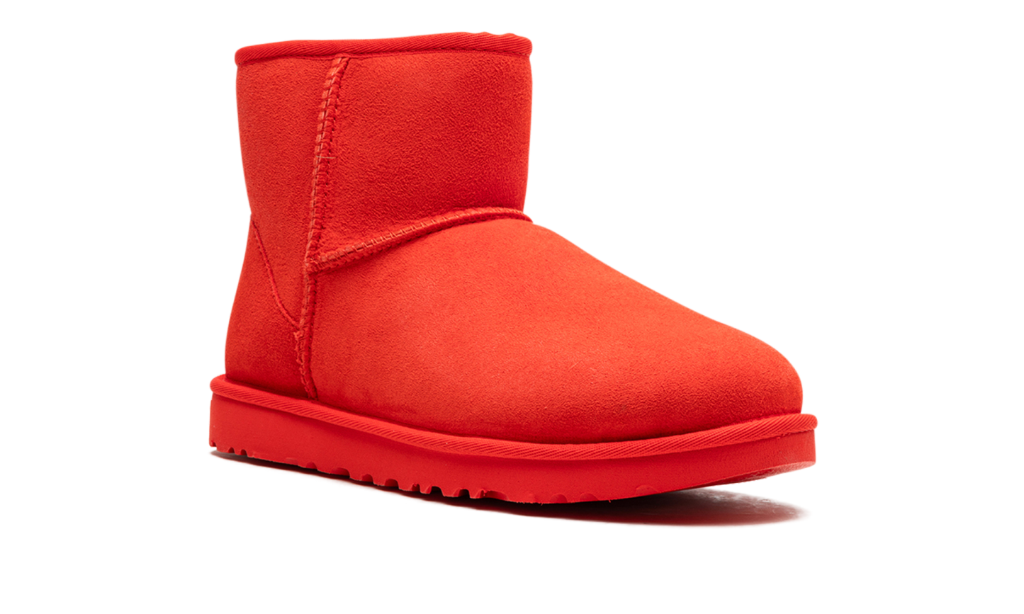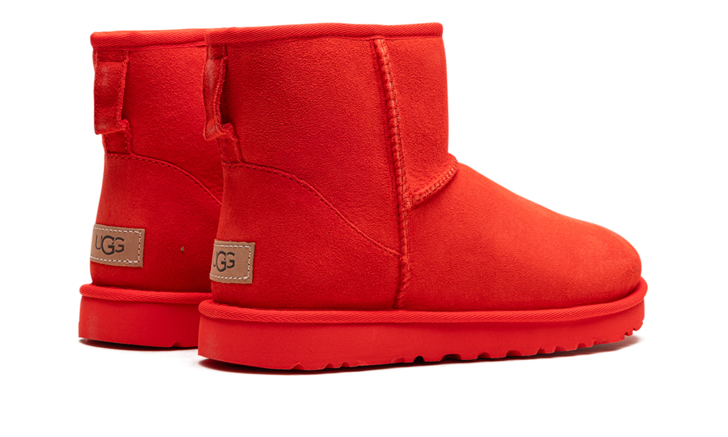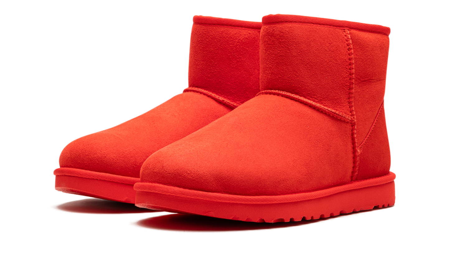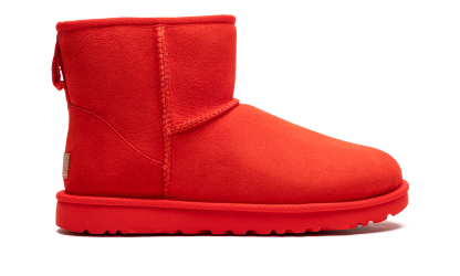 Dare to be vibrant with the UGG Classic Mini II "Cherry Pie"! This women's boot reimagines the iconic UGG silhouette in a bold, head-turning red. Crafted with plush Twinface sheepskin, it provides the natural warmth and moisture-wicking comfort you know and love. The Treadlite by UGG™ or SugarSole™ outsole offers lightweight cushioning and enhanced traction, while a water repellency treatment keeps your suede looking fresh. It’s the perfect pop of color for your casual wardrobe!