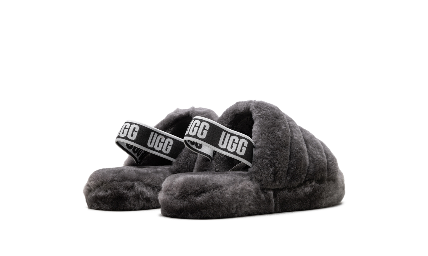 Unleash playful comfort with the UGG Fluff Yeah Slide PS "Charcoal." This Grade School-sized sandal delivers maximum coziness with its incredibly soft, fluffy construction in a versatile charcoal gray color. The plush upper and heel strap ensure a secure, comfortable fit, perfect for indoor lounging or making a bold, fuzzy statement outdoors. They're fun, fashionable, and feature the quality construction UGG is known for. Get ready for an instant mood boost with every step!