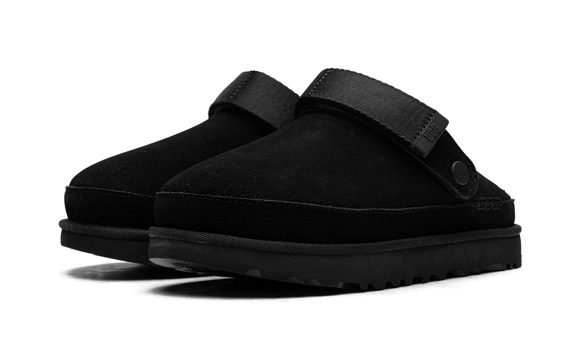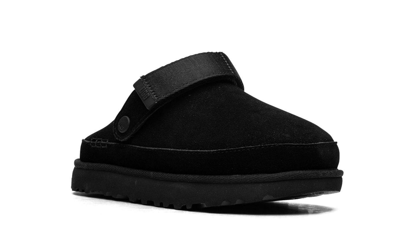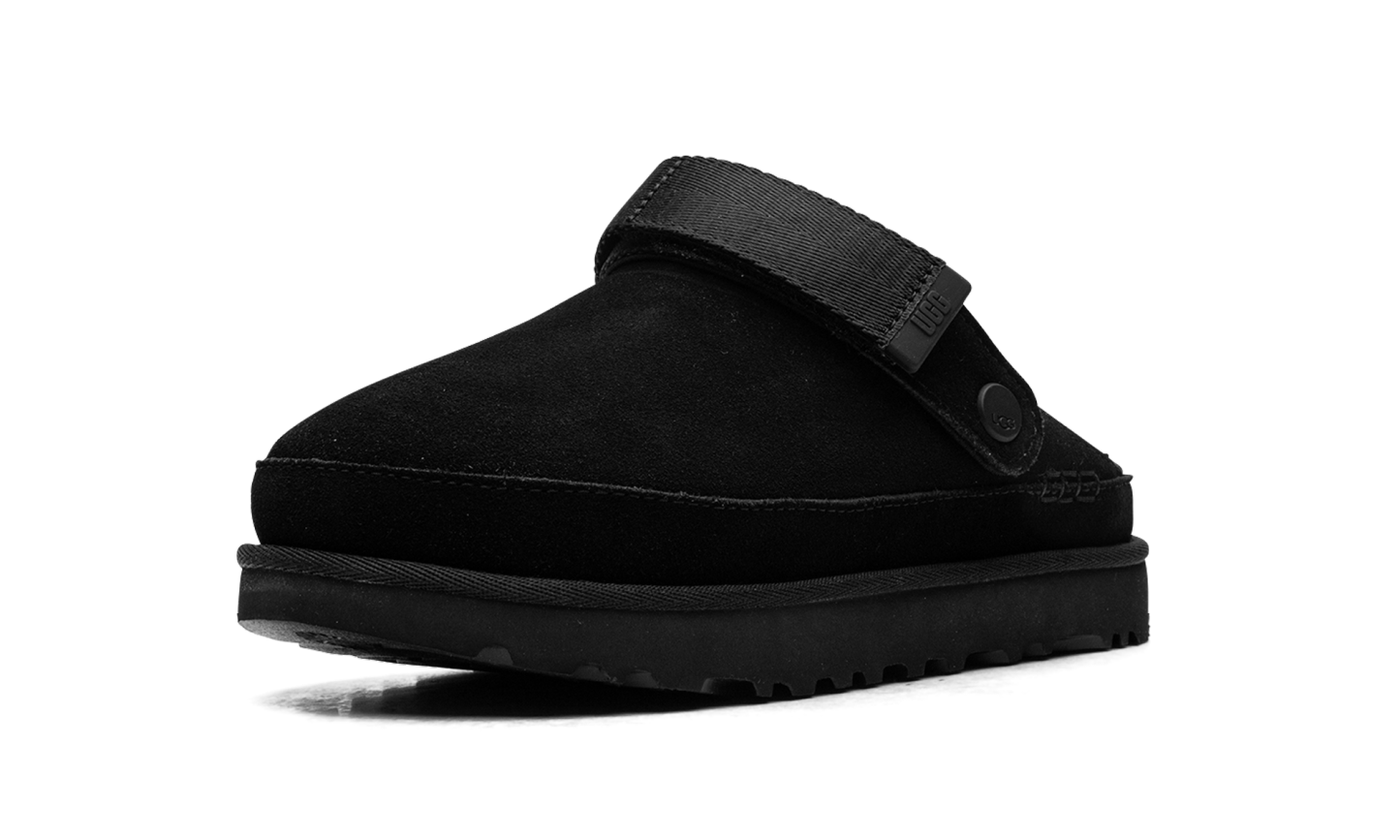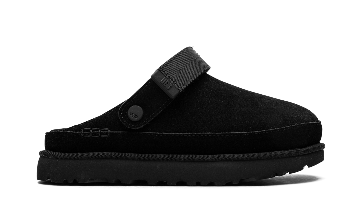 Own the versatile comfort of the UGG Goldenstar Clog WMNS "Black". This stylish women's clog features a premium black suede upper and a convenient convertible heel strap that pivots for a secure fit or simple slip-on entry. Built on a cushioned SugarSole™ EVA outsole made from renewable sugarcane, it offers all-day support with reduced fossil fuel reliance. This modern silhouette provides the ultimate blend of lightweight ease and confident, year-round style.