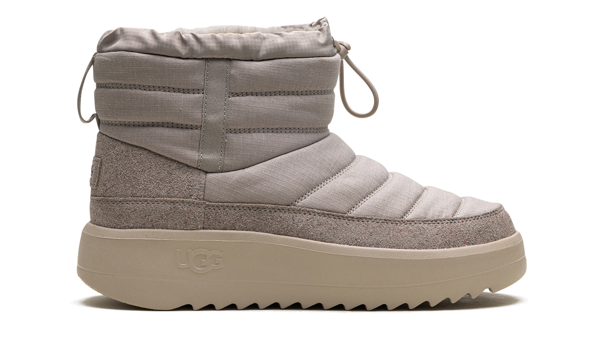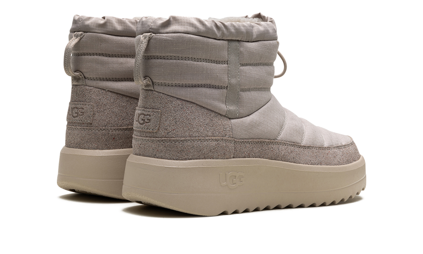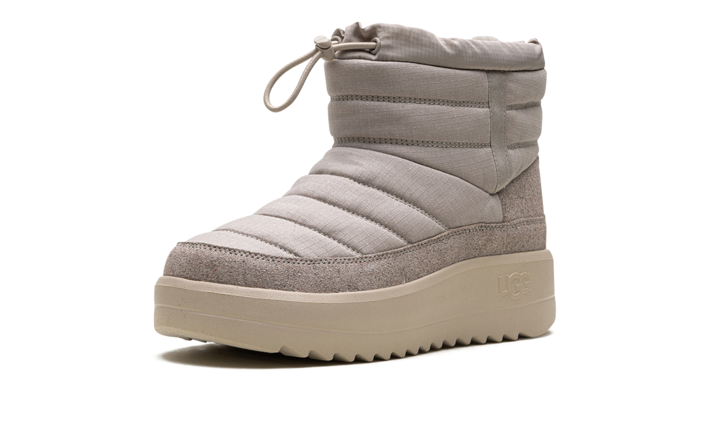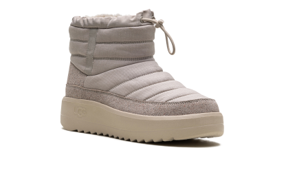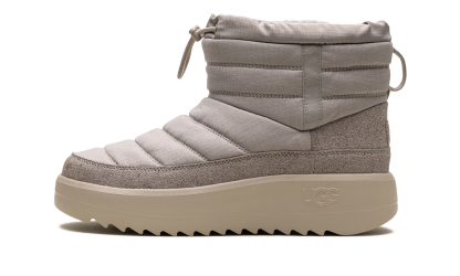 Define your style with the UGG Maxxer Mini Boot "Pumice", the rugged Urban Minimalist. This men's mini-boot updates the classic cozy silhouette with outdoor inspiration, featuring a durable textile upper and a cushioned collar for ankle support. It boasts a rich UGGplush™ wool lining for signature warmth and comfort. The chunky, traction-focused outsole adds a utilitarian edge and superior grip, ensuring reliable wear that easily tackles city streets and cold conditions.