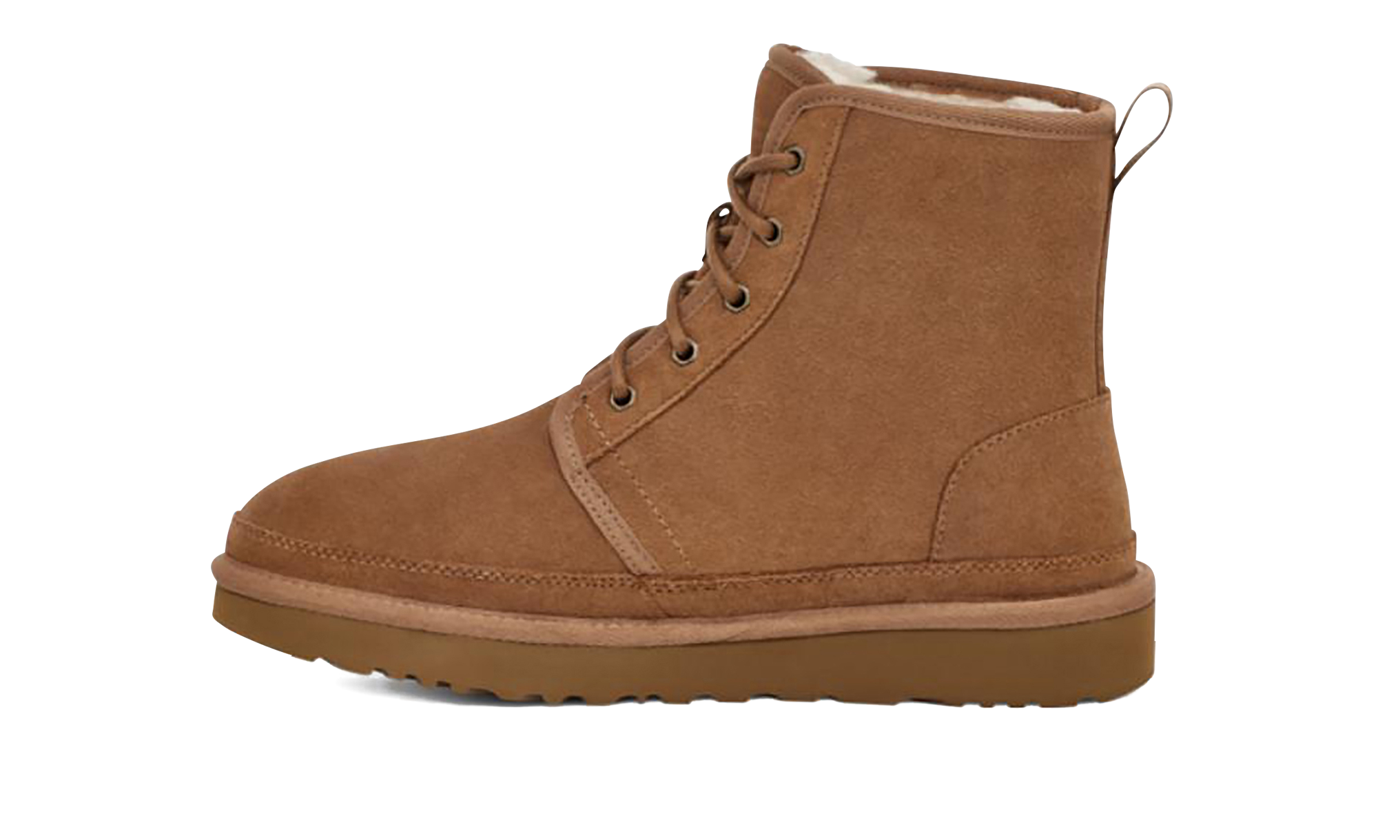 Elevate your cold-weather rotation with the Neumel High 'Chestnut' men's boot. This boot takes the beloved chukka style and extends the shaft for a fashionable, high-top look. Featuring premium chestnut suede and a warm UGGpure wool lining, it delivers signature UGG comfort and softness. The lace-up front and durable Treadlite by UGG outsole ensure stability, making this rugged-yet-refined boot ideal for everyday casual wear.