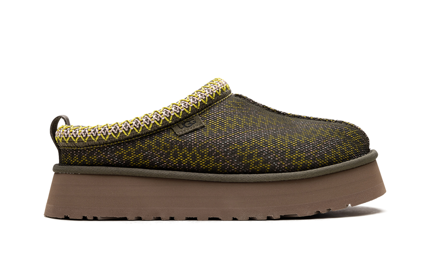 Turn up the volume on your comfort game with the UGG Tazz Maxi Tasman Slipper Wmns "Burnt Olive," the 'Platform Powerhouse!' This maximalist slipper takes the classic Tasman silhouette and amplifies it with a bold, 1.75-inch platform for elevated style and cushioning. It features a signature woven braid trim and cozy UGGplush™ wool lining. Crafted with a lightweight, sustainable SugarSole™ EVA outsole, this Burnt Olive slipper offers indoor-outdoor versatility and undeniable, effortless chic. Step out boldly in plush comfort!