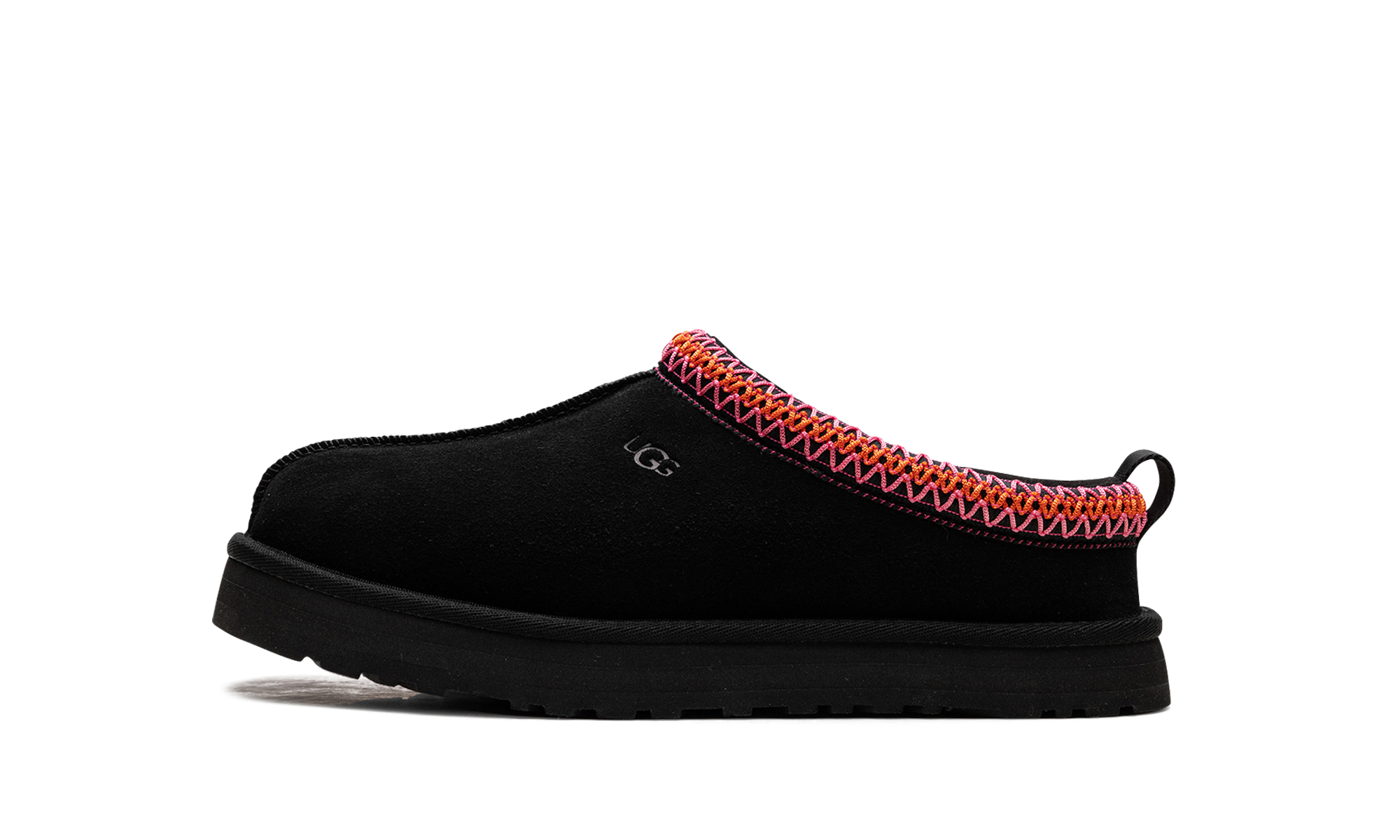 Let your Grade School kid step out in elevated comfort with the chic UGG Tazz Slipper GS "Black Multi". This popular platform slipper features a black suede upper contrasted by a vibrant, multi-colored Tasman braid around the collar. The interior is lined with UGG's ultra-cozy plush wool blend, providing luxurious warmth. The durable platform outsole ensures great traction and a stylish lift, making every step a confident one!