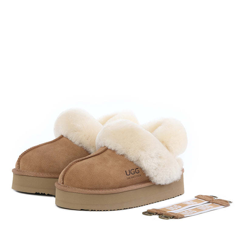 Slip your feet into a pair of these uqdfgg Fluffy Strappy Platform Scuff and feel the softness and warmth of pure hand selected 100% Australian Sheepskin.