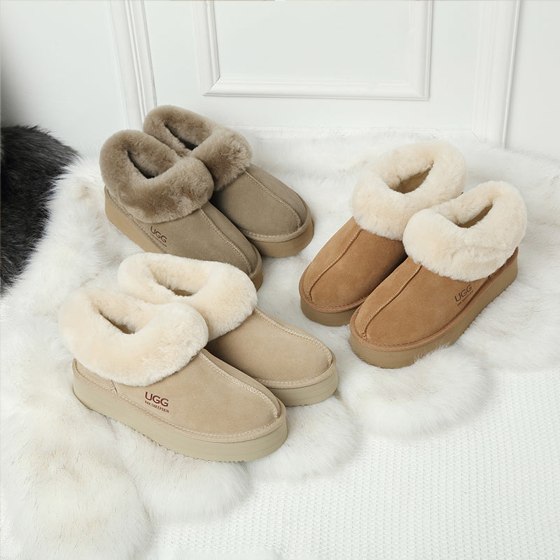 Slip your feet into a pair of these uqdfgg Juliana Platform Slippers and feel the softness and warmth of pure hand selected Australian Sheepskin.