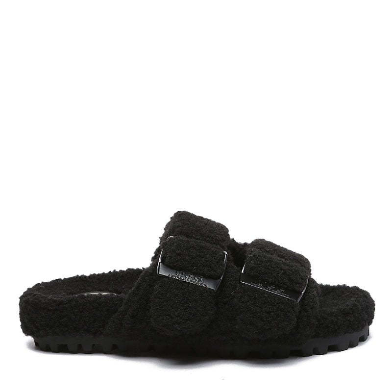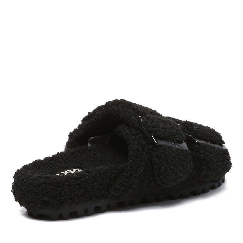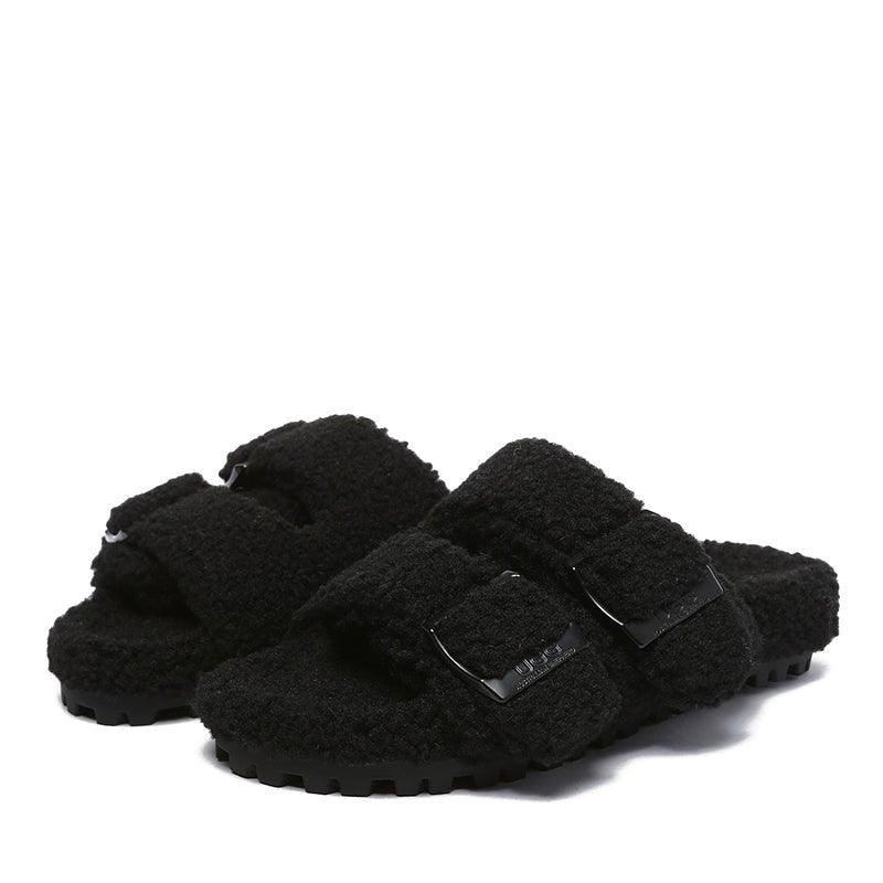 Introducing the uqdfgg Shaggy Slides! These luxurious, open-toe slip-ons combine the comfort of adjustable buckled straps with high-quality faux shearling lining to keep your feet warm and cosy all season long. Perfect for everyday wear, these shoes make a great gift for friends and family! Get ready to slide into uqdfgg comfort!