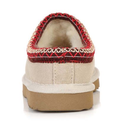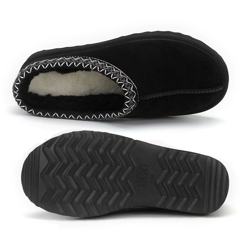 Relax in ultimate comfort with our uqdfgg Taso Slippers, the perfect blend of coziness and style. Whether you're facing chilly weather or simply unwinding at home, these slip-on are your ideal choice. The suede upper showcases an embroidered Tasman trim, adding an extra touch of style, and a classic raw seam down the center gives them that timeless look.Our best-selling slippers are versatile for every occasion, boasting the same ultra-lightweight and durable outsole as our Classic Boots. This ensures you can confidently wear them both indoors and outdoors. Lined with plush sheepskin and upcycled wool, these slippers are crafted from soft suede and feature an embroidered braid, offering an easy slip-on silhouette for your convenience.