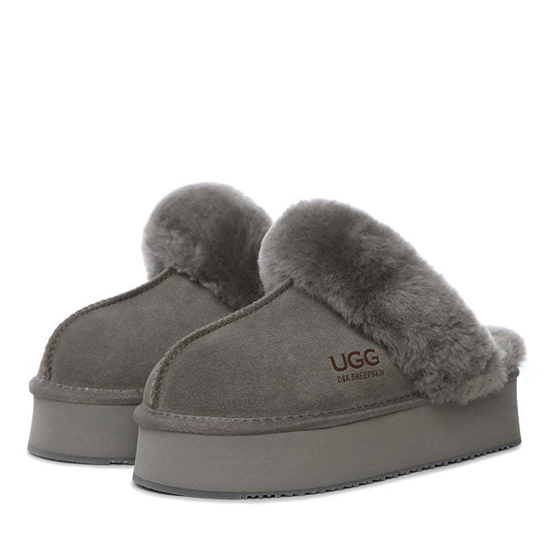 Step up your slipper game with the uqdfgg Ultimate Platform Ladies Scuff from uqdfgg Originals where comfort meets bold style. Imagine the coziness of your favorite leather jacket... but for your feet! These leather platform scuffs are here to elevate your downtime vibe, literally. Perfect for lounging or those "accidentally went to brunch in my slippers" kind of days, the uqdfgg Ultimate Platform Ladies Scuff sleek design and luxurious feel will have you strolling through winter like it's your own personal runway. Why settle for ordinary when you can scuff around in extraordinary