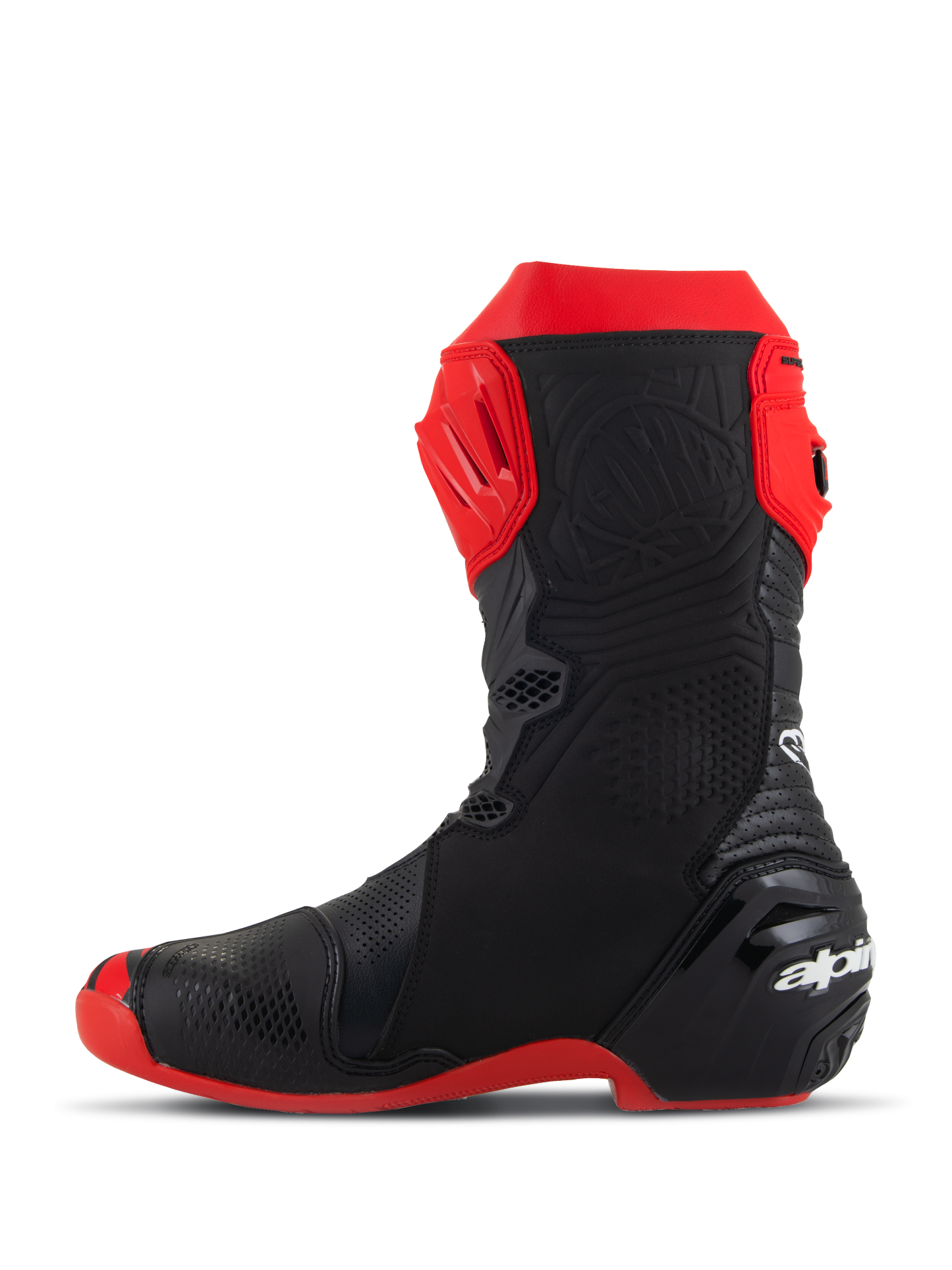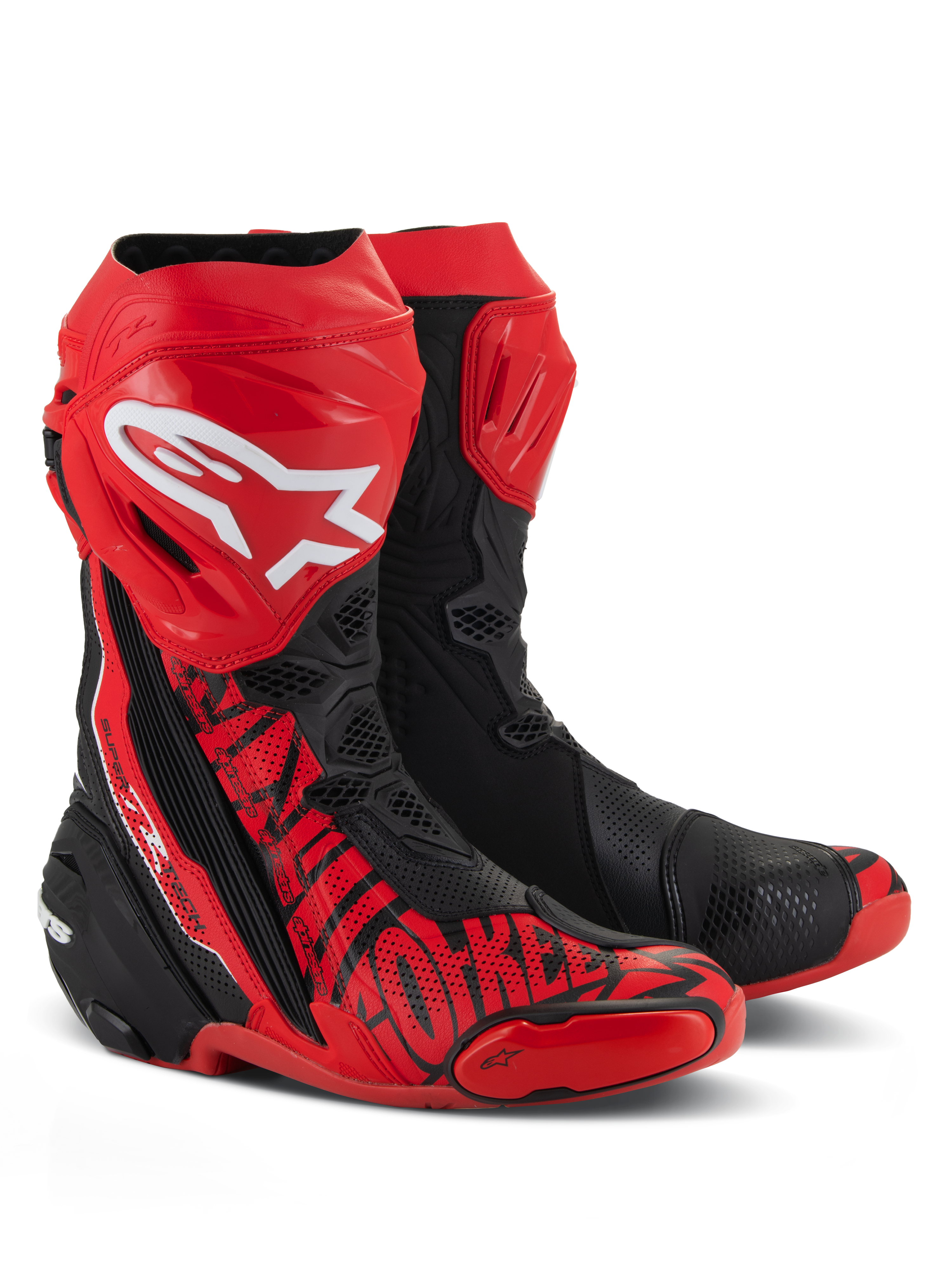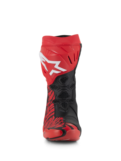 Almost every component of the Supertech R Vented Boot, Alpinestars definitive racing boot as worn by a roster of champions past and present, has undergone a rigorous program of upgrades to sharpen its performance features even further. Featuring extensive perforations throughout for maximum airflow, innovations derived using feedback from Alpinestars involvement in top flight racing include a newly redesigned front flex area, a redesigned rear bellow, a redesigned top gaitor, a new shifter and shin plate, a new shin slider and a new inner bootie, all of which enhance the comfort, protection and the performance of this boot to a new class-leading high.